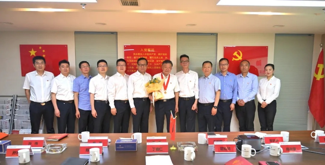活動在雄壯的國歌聲中拉開帷幕。在莊重而又熱烈的氛圍中,李彪代表公司黨委向公司老領導、老黨員丁循仁同志頒發“光榮在黨50年”紀念章,青年黨員許愿給丁循仁同志送上金黃的向日葵捧花,表達青年黨員對老黨員、老同志的深深敬意和健康祝愿。